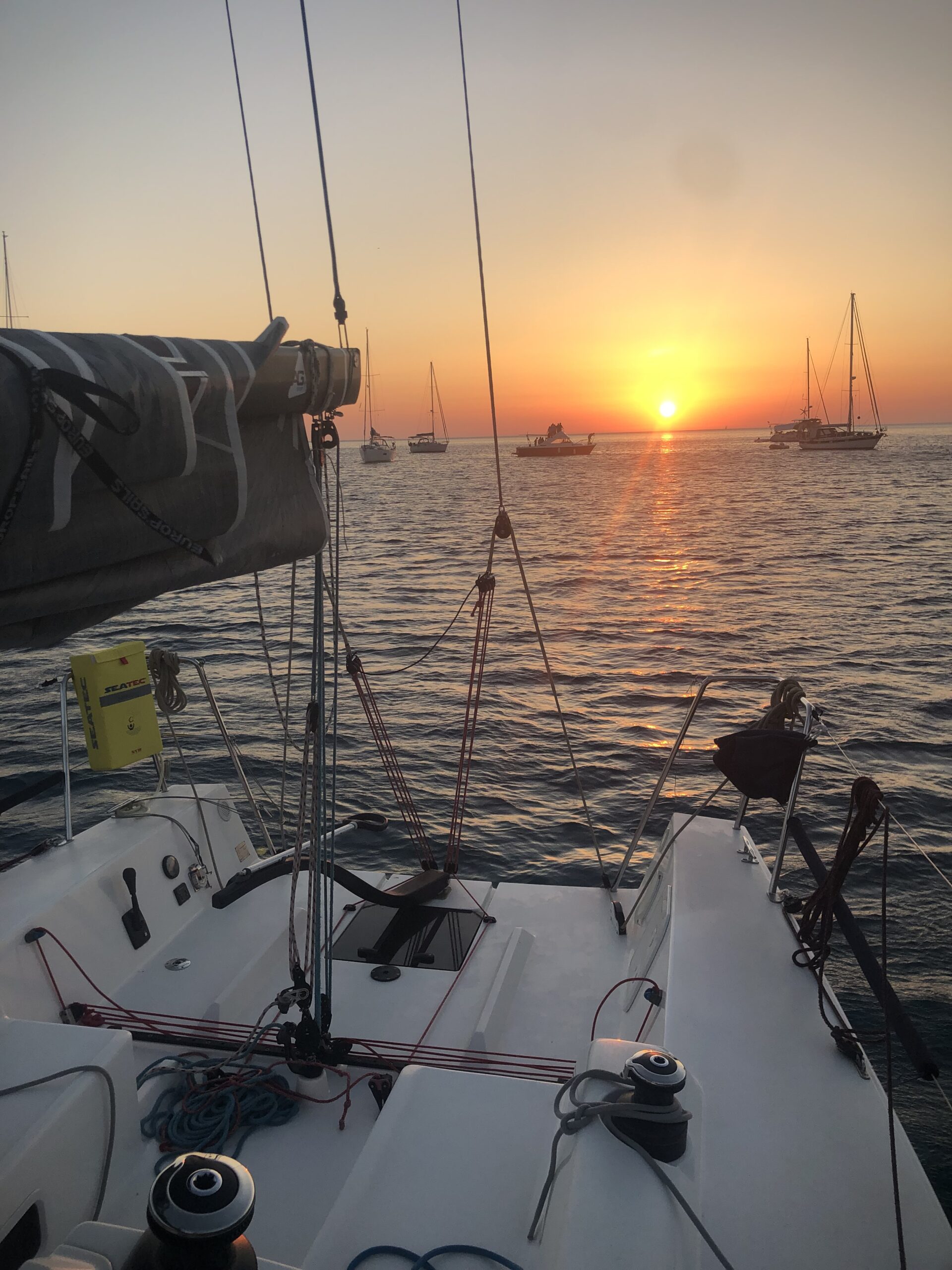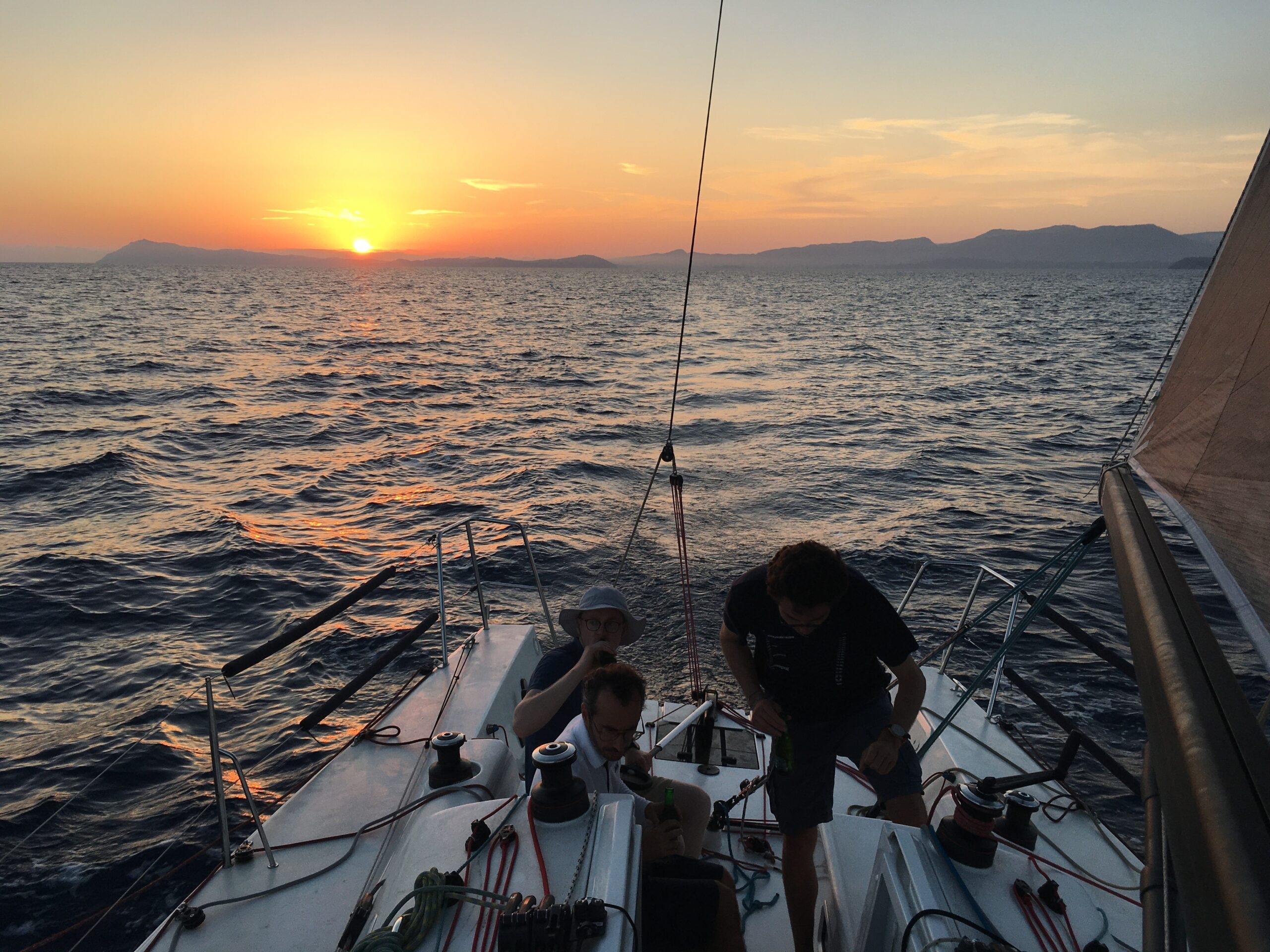Les dauphins nous ont accompagné parfois et le soleil toujours ! Les nuits d’étoiles filantes et surtout la bonne humeur etaient avec nous !